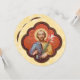 Ett vackert porträtt av St. Joseph tog sig in i en mörk guldfärgad gult och ljusblå mantel skuggad i rödviolett. Han har en liljessprej som symboliserar renheten i sin höger och en såg att hans yrke var snickare i hans lämnat. Porträtt är inkapslat i en ojämnt stor ojämnt stor och fyra små ojämnheter som ibland kallas en quatrefoil för dubbla. Kvadatrefolien och dess varianter är en oerhört populär formgivning som just nu återupplivar ett formulär som först blev populärt i den medeltida gotiska arkitekturen. + Image Kredit (TF 02): Antique Porträtt of St. Joseph i en oktobil från en devotional print som ursprungligen publicerades i kromolitografi av L. Turgis & Fils, Paris, Frankrike, Pl. 68 (med tysk text), slutet av 1800-talet, från designerns privata insamling av religiösa ephemera. + Huvudstöt: 19 mars; St. Joseph the Worker: 1 maj