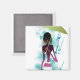 Porträtt i unga kvinnor som håller handväska och p magnet