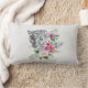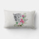 Lumbalkudde med en vacker illustration med ett grått, svart och vitt leopard porträtt. Det här vackra djuret omges av en tropisk blombukett. Elegant, exotisk och underbar.