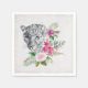 Pappra blöjor med en vacker illustration med grått, svartvit leopard porträtt. Det här vackra djuret omges av en tropisk blombukett. Elegant, exotisk och underbar.