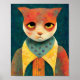 Porträtt illustration av en Ledsen Ginger Cat klädd som människa i en 70-talskonst.
