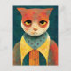 Porträtt illustration av en Ledsen Ginger Cat klädd som människa i en 70-talskonst.