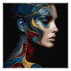 En abstrakt porträtt som visar en kvinnas ansikte i sin profil med hjälp av nedfläckad glasteknik. En del av hennes ansikte och nacke är förankrade med en komplicerad abstrakt utformning med gyllene linjer och texturerad fyllning. Fullt-spektrumet i färg skapar ett dynamiskt och konstnärligt mästerverk, skapar detta ett verkligt vackert och fängslande biet av konst.