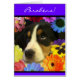 Para OS anos de uma för Cartao post- em-portugues menina. Foto de um cãozinho e flores. Hälsningkort i portugisen för en flicka födelsedag med fotoet av en valp och blommor. Också tillgängligt i rosa bakgrund, och på engelskt och portugisiskt. Fotografi av Maria Santos (Lusinhas gör Sul),