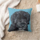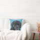 Den härliga portugisiska vattenhunden målade porträtt på en blåttbakgrund. Precis alla är en valp, detta porträtt underbar på sorterar av kvadrerar kudder!