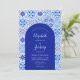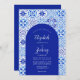 Den här skorstenskonstruktionen har en bakgrund mönster av blå och vit vattenfärg, portugisiska plattor eller azulejos. Anpassa den med namnen på briden och trimningen i det vita kalligrafiskriptet och den återstående texten i en kombination av sans serif, copperplate och italics på en blå bågform. Den omvända sidan ger utrymme för bröllop-information i vitt på en helblå bakgrund, tillsammans med en QR-kodgäst som kan besöka webbplatsen och OSAN, vilket sparar kostnaderna för att skriva ut och skicka separat OSA kort.