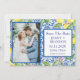 Portugisiska plattor, vattenfärgscitroner, blå, vit, gult, Medelhavet, elegant, modern, romantisk, foto, spara datuminbjudningarna. Anpassa den med din information.