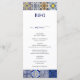 En modern men rustik utformning av portugisiska plattor i Medelhavsområdet mönster bröllop. Ett färgstarkt Medelhavstäcke som användor olika vintagar för att skapa en sommardesign i elegant bröllop. En charmerande portugisisk, italiensk och spansk har påverkat utformningen av Medelhavsrutor med hjälp av typiska manusbilder. En elegant portugisisk brickor var temat bröllop-menykortsdesign med modernt inslag. Det finns också möjlighet att matcha bröllopsinbjudningar och andra artiklar i kontorsartiklar.