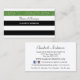 Anpassa det här moderna svartvita affärskortet för ränder av vågrät med en glatt grönt som liknar rand genom att lägga till ditt namn och ditt företag. Det här trendiget och den eleganta mönster-designen har ett ställe på baksidan för att lägga till kontaktinformation, inklusive social-mediehandtag. Platt utskriven bild, INTE glitter.