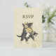 bröllop OSA av roligt. Katten som är gift med vintage har en vit ros-buquet och Groom-kattben bredvid henne med sin svarta top hat. Bakgrund till elfenbensbaserad blommigt. Anpassa datumtext på baksidan. Versionen har nummer som deltar.. Vuxnor och underordnade.