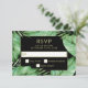 Den vilt liggande OSA kort i elegant bröllop har en överkant av tropiska löv och handflatan som omger ett svart rektangulärt ram som innehåller OSA. Det är ett fantastiskt val för ett badbröllop, ett destinationsbröllop, luau bröllop eller bröllop med ett tropiskt tema. Anpassa OSAN med det svarsdatum du behöver.