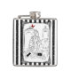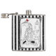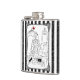 Ett dam-omklädningsrum inramat av en vintage stil ornate ram med tryckt svart strimlad bakgrund.