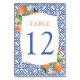 Positano Citrus Oranges Antique Blue Tiles Bröllop Bordsnummer