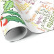 Julserie: Roligtens julomslutning papper med positiva och motiverade ord. Julbudskapet, löv och röda bär med snö som tak över sig är ett sista jultema. Perfekt för att slå in julklappar för någon som behöver ett incitament!