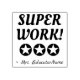 Den här inspirerande gummikonstruktionen i frimärke innehåller det uppmuntrande budskapet "TOPPEN WORK!" och personligens lärare eller lärare i namn. Den har också en dekorativ stjärnform. Det skulle kunna användas av en lärare, lärare, instruktör eller lärare när de markerar uppdrag för att visa att student har utfört ett underbart arbete.