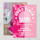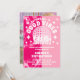 Denna rosa festinbjudan har en diskoboll och retrotypografi, vilket ger den en rolig och lekfull stämning. Framsidan på inbjudan är prydd med en rosa tie dye-bakgrund och en glittrande diskoboll, stjärnor, dansande flickor som sätter tonen för en livlig och energisk fest. Den retro typografin bidrar till temat och ger inbjudan en nostalgiskt chic känsla. På baksidan av inbjudan finns ett anpassat foto av födelsedagsflickan som lägger till en personlig touch i designen.