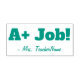 Den här motiverande utformningen av gummi frimärke innehåller meddelandet "A+ Job!" och en anpassad lärare i namn. Det skulle kunna användas av en skollärare, lärare eller lärare när de graderar student, för att visa att ett student har gjort ett enastående arbete.