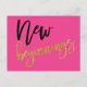 Ge har någon som lyfter och skickar dem ett vykort med ett upplyftande meddelande. Detta har ord New Beginnings i guld och svart typografi mot en shock rosa som kan ändras till ett annat färg om du så önskar.