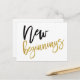 Ge har någon som lyfter och skickar dem ett vykort med ett upplyftande meddelande. Det har ord New Beginnings i guld och svart typografi mot en vit bakgrund som kan ändras till ett annat färg om du så önskar.