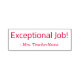 Den inspirerande utformningen av gummi frimärke innehåller det uppmuntrande budskapet "Exceptionellt Job!" och anpassningsbarnas lärare namn. Lärare, lärare eller lärare skulle kunna använda den när de graderar student för att erkänna att ett student har utfört ett enastående arbete.