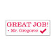 Den inspirerande utformningen av gummi frimärke innehåller det inspirerande budskapet "UNDERBART jobb!" och personligens lärare eller lärare i namn. Den har också en dekorativ bockmarkering. Lärare eller lärare skulle kunna använda den när de markerar uppdrag för att erkänna att student har utfört ett underbart arbete.