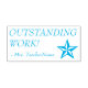 Den här inspirerande utformningen av gummi frimärke innehåller det inspirerande budskapet "OUTSTANDING WORK!" och en skräddarsydd lärares namn. Den har också en dekorativ stjärnikon. Det skulle kunna användas av en skollärare, lärare eller lärare när de markerar uppdrag för att visa att student har gjort bra ifrån sig.