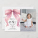 PosRosa Photo Coquette Bow 1:a födelsedagen Inbjudningar