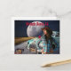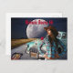Postkort med bild av surrealistiskt kollage av historisk rutt 66.