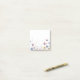 Jag ville att denna klisterlappdesign skulle kännas lätt och luftig, med mjuka rosa och blåa vilda blommor som blommar längs den nedre kantlinjen. Den är perfekt för dem som vill ha en känsla av trädgård utan att tränga på sidan. Jag har lämnat gott om öppet utrymme högst upp så att ditt meddelande - eller ditt namn - är i fokus.