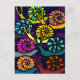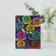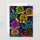 Ett vykort med färgstark tävla i tecknad snigel och en lila och mörk blått snurrande bakgrund.