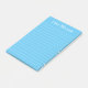 Detta stora format postar som det, visas anteckningsboken i en turkosblåttfärg med vitlinjer.