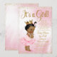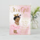 Afrikansk prinsessa baby shower inbjudan via post med söt prinsessa babyflicka som bär en skrynklig rosa tutu och guldkrona med en pärlhalsband på en vacker rosa och guldbakgrund. Denna eleganta rosa och guld post inbjudan till baby shower kan enkelt anpassas för ditt evenemang genom att lägga till dina detaljer i den typsnittsstil och färg och formulering du väljer.