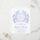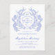 En vapensköld för blå blommigt i elegantens Fransk tar vintagen i mitten på den här inbjudan om att födelsedag inte ska hållas. Ornat, formellt och mycket feminin kommer att få dam att känna sig mycket speciellt. Det finns samordning av party.