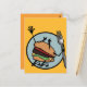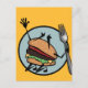 Lustigt vykort för lodrät av ostburgare. Kortets baksida är en annan färg än framsidan. Framsida och baksida av färg kan anpassas.