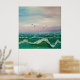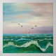 En serenmålning av havet fångar den rytmiska rörelsen i vågar, och rullar försiktigt men kraftfullt under ett stort himmel. Vit tippad vinkar vapensköld längs den djupa blå vatten, där var och en reflekterar en aning solljus. I förgrunden gländde fiskmås på ett skickligt sätt över vatten, deras vingar spred sig på vid gavel och kastade känsliga skuggor på vågar nedanför. Horisonten sträcker sig oupphörligt, blandar mjuka nyanser av himmel och hav och skapar en känsla av öppenhet och frihet. Situationen är fredlig men vid liv med ljud i vågar och sjöfåglarnas avlägsna krav.