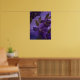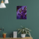 Målningen visar lila blommor elegant ritad på en abstrakt lilac-bakgrund. Blommorna, i skuggor som sträcker sig från djup violett till mjuk lavender, framställs med känsliga petaler och tunna detaljer, vilket skapar en harmonisk kontrast med mjuk, blandad bakgrund. Den lata bakgrunden, abstrakten och textureringen, funktioner som flödar penseldrag och subtila tonvariationer, ge sammansättningen en drömmande, eterisk kvalitet. Lila blommor verkar flyta eller komma naturligt ur bakgrunden, vilket tillför en känsla av lugn och ära till hela bilden.