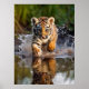 Poster visas med ett fototryck av en söt tiger unge i vatten puddle. Anpassa det här objektet eller köp som det är. Licensierad bild