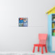 Poster med 4 kvadratsektioner av processaa konst som utförs av ett 3 år gammalt barn. Avsnittet grund höger har textläsning: SKAPA Färg är blues, , krämer, vit och svart. Alla barn bör få skapa sin egen konst!