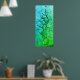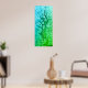 Den här teckningen är ett lodrät abstrakt biet med en övertoning av blyer och gröntar. Färg övergår smidigt från en djup, lugnande blått överst till en vibrerande grönt vid grund. En distinkt vit linje springa rakt i mitten av biet, som ger en känsla av djup och delning. Yta struktur är rik, med cirkulära och organiska former spridda över hela världen, ge en känsla av fluiditet och rörelse. Den totala effekten är säker och påminner om undervattensscener eller naturligt struktur.