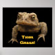 En grumpy tittar American Toad (Bufo americanus) tittar ut på dig från denna Earth Day poster. Denna lilla amfibian är brun med svart färgning, guld oliv grönt färgning och orange. Hans krigare skiljer honom från hans grosgrannar. Även om grodynglen kläcktes i vatten av dammar, floder, sjöar eller vattendrag flyttas grodynglen snart till land där väggarnas vuxen lever. Hans häpnadsväckande samtal är en lång skrik. Han ser ganska häftig ut, men är faktiskt en snäll liten kille som äter många trädgårdsskadedjur, inklusive insektra och kulor. Texten lyder: Tänk grönt! Den kan anpassas eller tas bort.