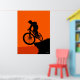 Ta med dig aktionen och adrenalinen till dina väggar med den här bikerna som poster. En slående silhuett av en cyklist på kant i en klippa sprängs mot en härlig bakgrund av orangen och fångar extremidrottens trill. Perfekt för idrottare, sportfantaster och modern äventyrsdekanter.