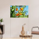 I denna sjudande scen samlar bin omsorgsfullt nektar från kluster av den ljusa orangen Buddleia Globosa eller Orange Boll Träd, mot bakgrund av en lush grönt löv och ett tydligt blå himmel. Det varma solljuset belyser deras känsliga vingar, och visar på naturens invecklade förhållande mellan pollinerare och blommor. Den här bilden fångar upp ett ögonblick av harmoni, där liv och färg blandas sömlöst i en perfekt visning av naturens motståndskraft och skönhet.