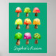En söt, vacker design av roliga, vattenfärgade svampar. Barnens illustration är perfekt för en flickas sovrum. Svamprumsfärgat mönster-tema. Barnens roligt. Personlig namn för barn rum.