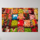 Poster ut på en visning av en godis i godis på en marknad med färgstarka sötsaker och andra konfektyrer.