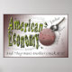 Bilkonst av haveri i boll, märkt "Republicanism", som slår in i den amerikanska ekonomin med åtskilliga tillhörande konsekvenser som ramlat in i bakgrunden, "outsourcing, avreglering, etc." Grund lyder: "Och de vill ha en ny spricka!" Finns i olika storlekar. Bildruta tillgänglig. Av D. Bennett från Balance America.