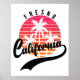 Fresno poster med en retrokonstruktion som har en solnedgång och handflatan träd. Den här designen innehåller även ett handskrivet teckensnitt med ett svan-tecken som ska bytas ut mot snyggten. Den här poster är bara till dig om du är från Fresno eller kan få som gåva eller souvenir för någon.