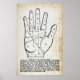 Ett antika handavläsnings- eller palmidiagram poster.
