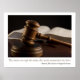 En trädomares gavel med en referens bok (bibel) i ofokuserad bakgrund. Följande citat från den romerska Tacitus: "Ju mer korrupt staten är, desto fler lagar."