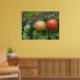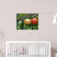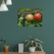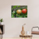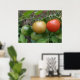 Denna vackra poster har ett foto av en massa mognadstomater, inklusive en röd tomat, orange och körsbärstomat i grönt i en rad, som växer på en tomatfabrik i en förortsträdgård. Fotografiet togs med makrofotografi för ett detaljerat resultat.