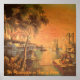 Återtryck av en och en litografi som visar Mississippi-floden med fraktaser, flottar och segelbåtar på sommarens kväll. Skrivs om på den här poster.